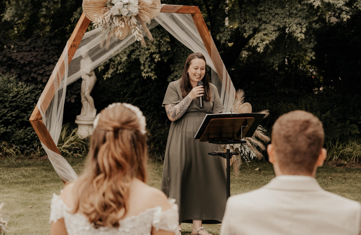 Ich wurde von der lieben Julia Wiesner (Traupaar Akademie) gecoacht, welche bereits unzählige Hochzeiten als freie Rednerin begleitet hat und auch seit einigen Jahren erfolgreich freie Redner/innen ausbildet. Sie steht mir mit Rat und Tat zur Seite, damit ich, auch ohne viel eigener praktischer Erfahrung, gleich zu Beginn eine hohe Dienstleistungsqualität anbieten kann. Durch sie bin ich auch mit einer Gruppe freier Redner/innen vernetzt, mit denen ich mich regelmäßig austauschen kann, um auf dem neuesten Stand zu sein.